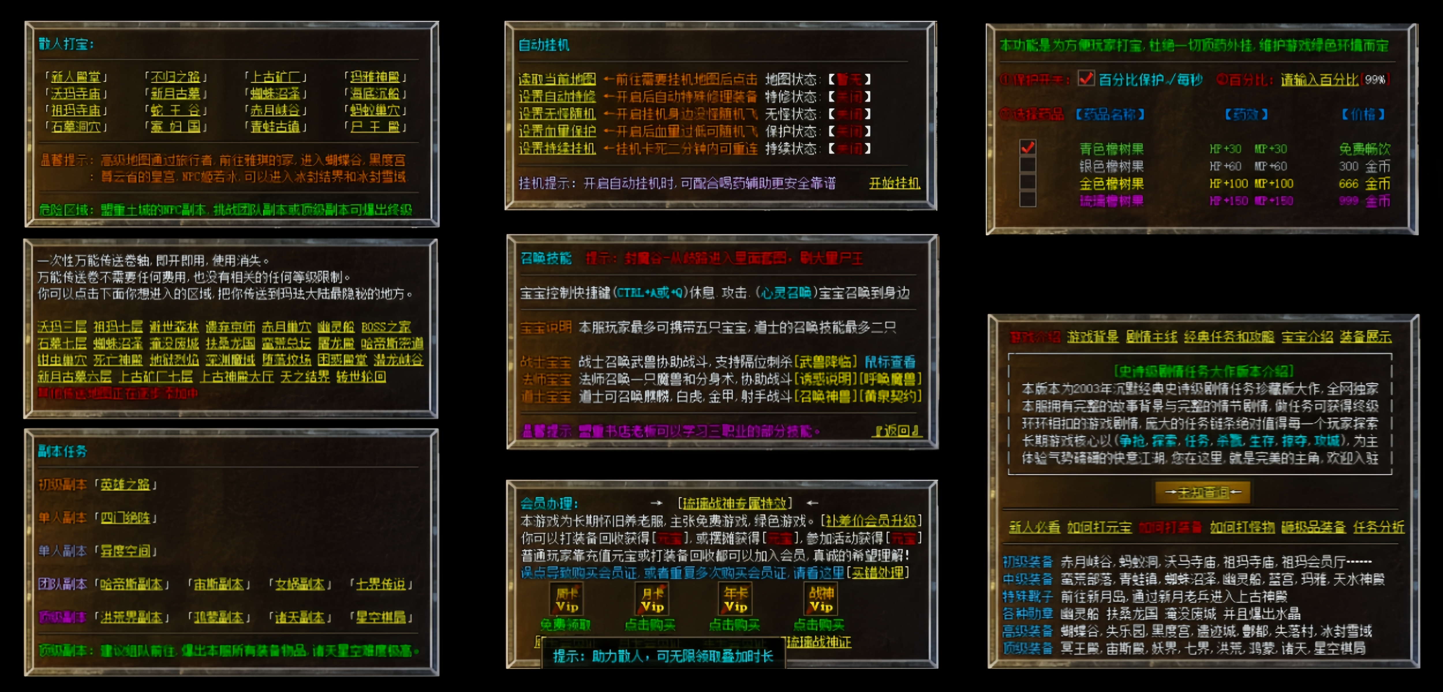 金币+元宝版.初级装备可回收金币、中高级装备可回收元宝. 元宝可买顶赞.无充值门槛地图.散人打怪全能毕业.